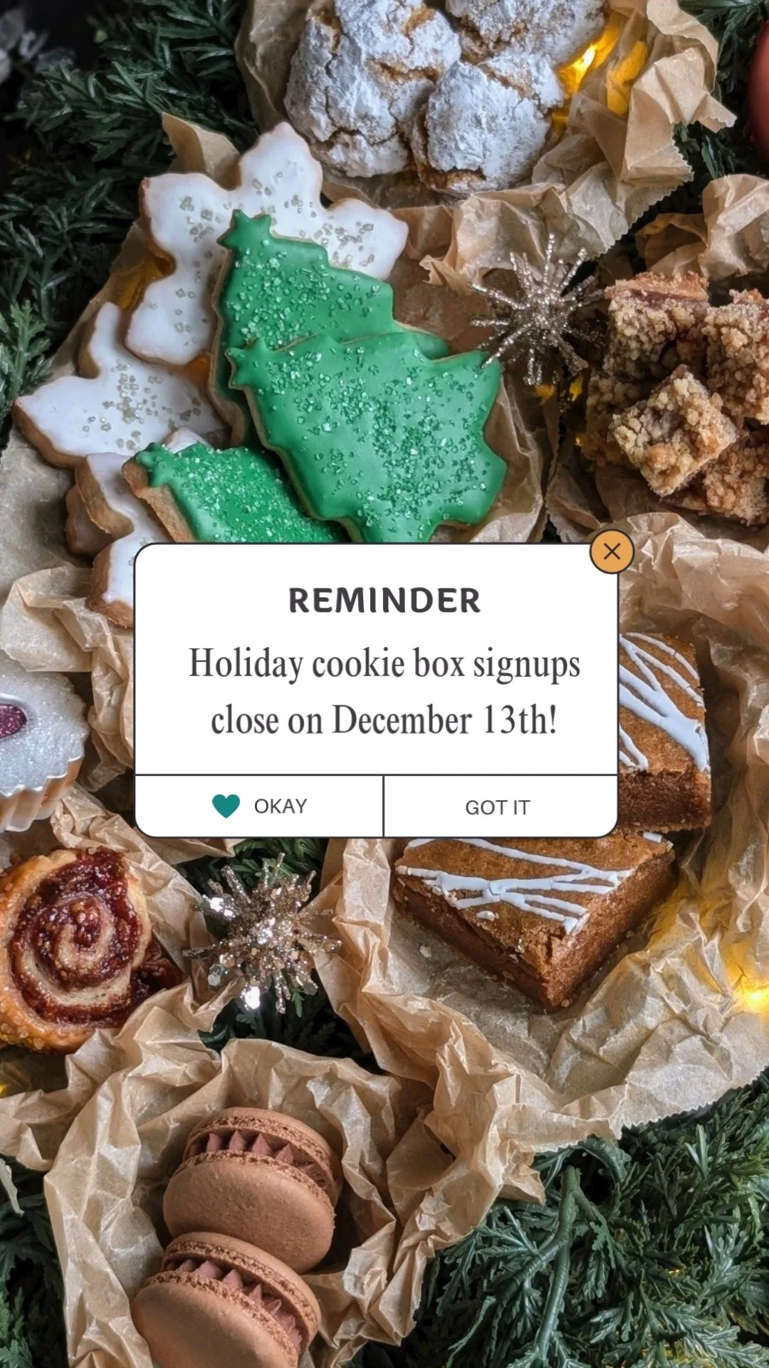 Cookies have been tested, photographed, and tweaked… Now folks can sign up for holiday cookie boxes until December 13th!